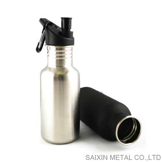 Featured here is a drinking bottle in sturdy stainless steel construction. The bottle is tough and durable with an easy-to-use plastic screw-top. It is ideal for strong sterile water during traveling or trekking.