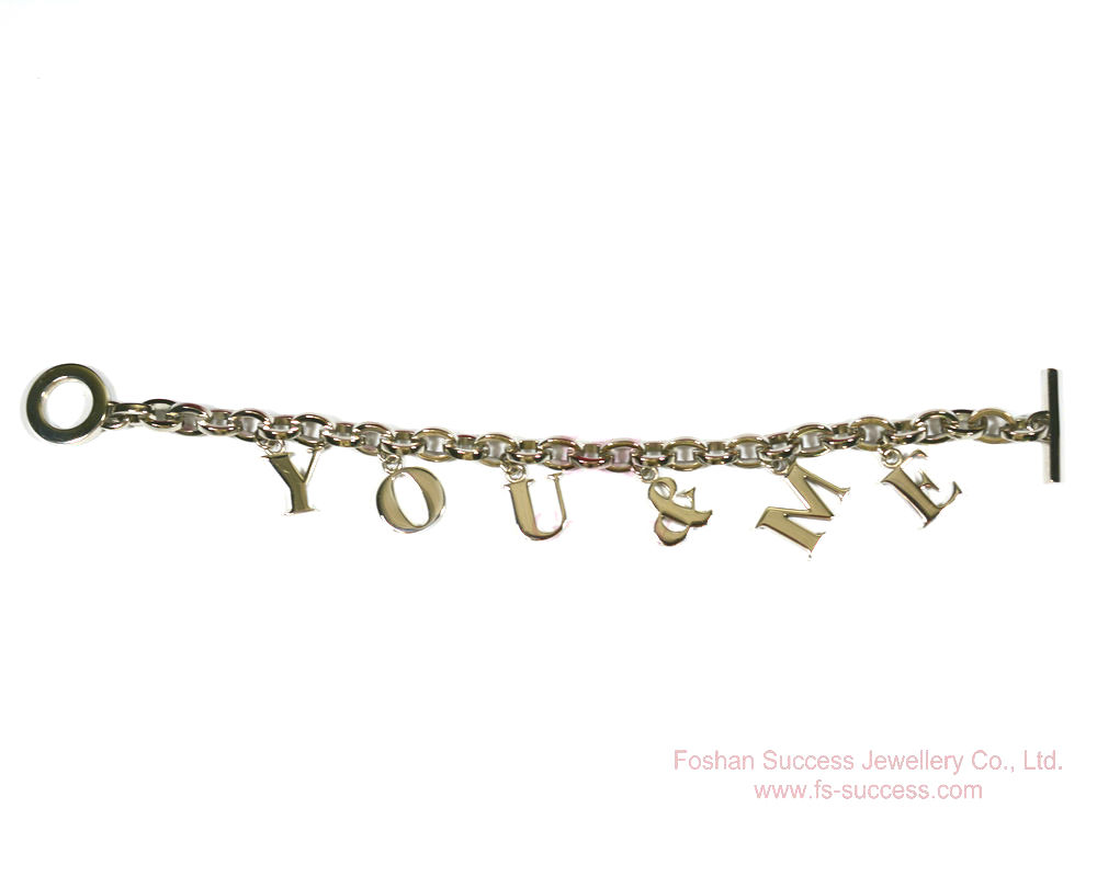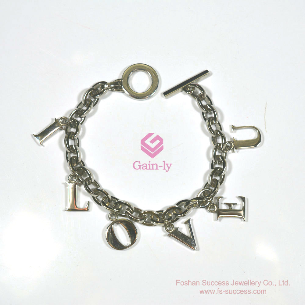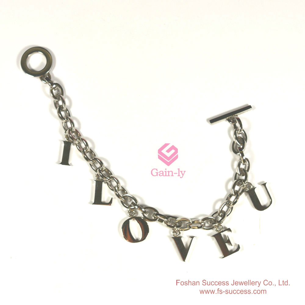 Lay your hands on this girlish bracelet crafted with letters charms. Separated letter charms of “I LOVE U” are hold onto the cable chain securely, delivering a heartwarming note understatedly. Fashioned from quality stainless steel, the whole construction comes in a burnished finish.