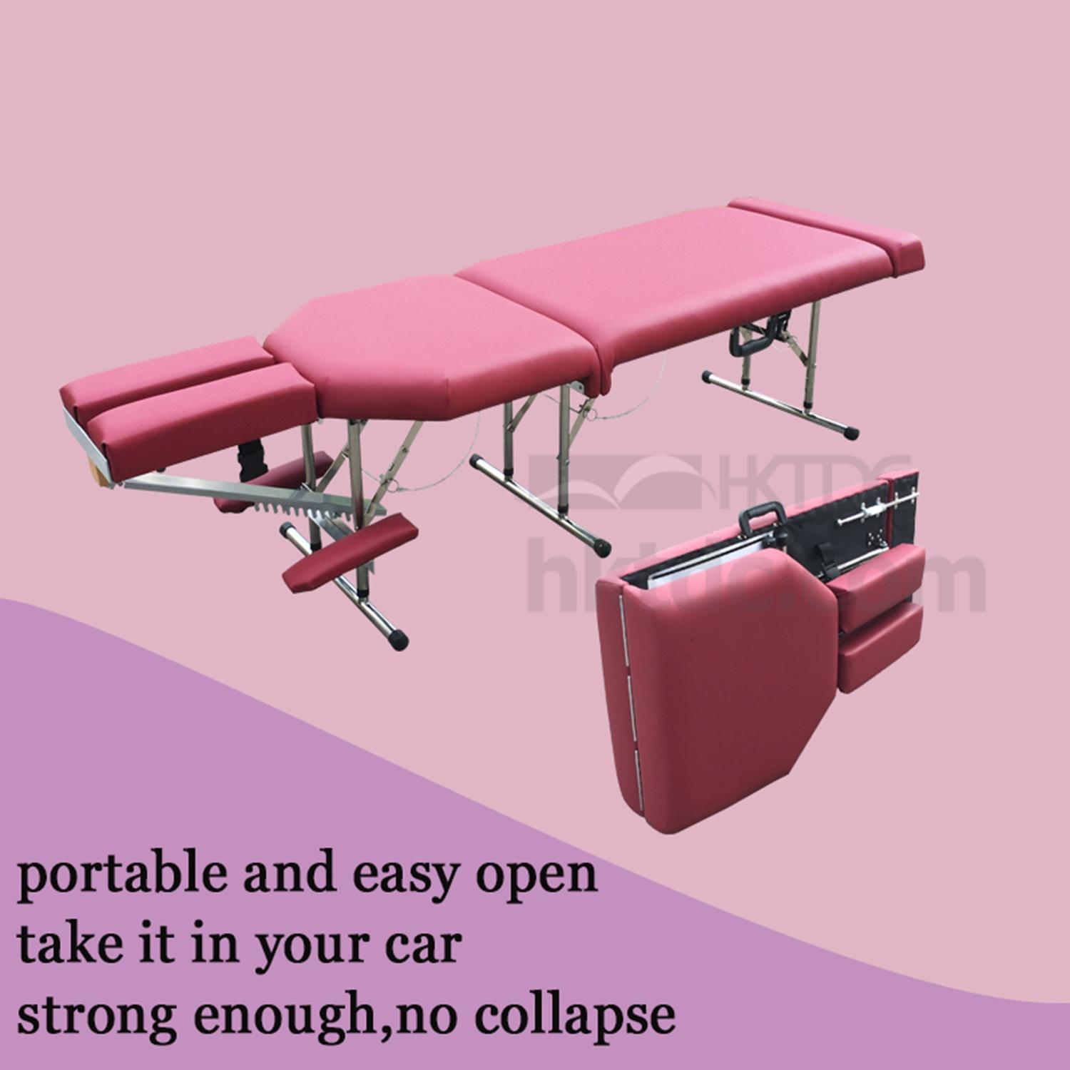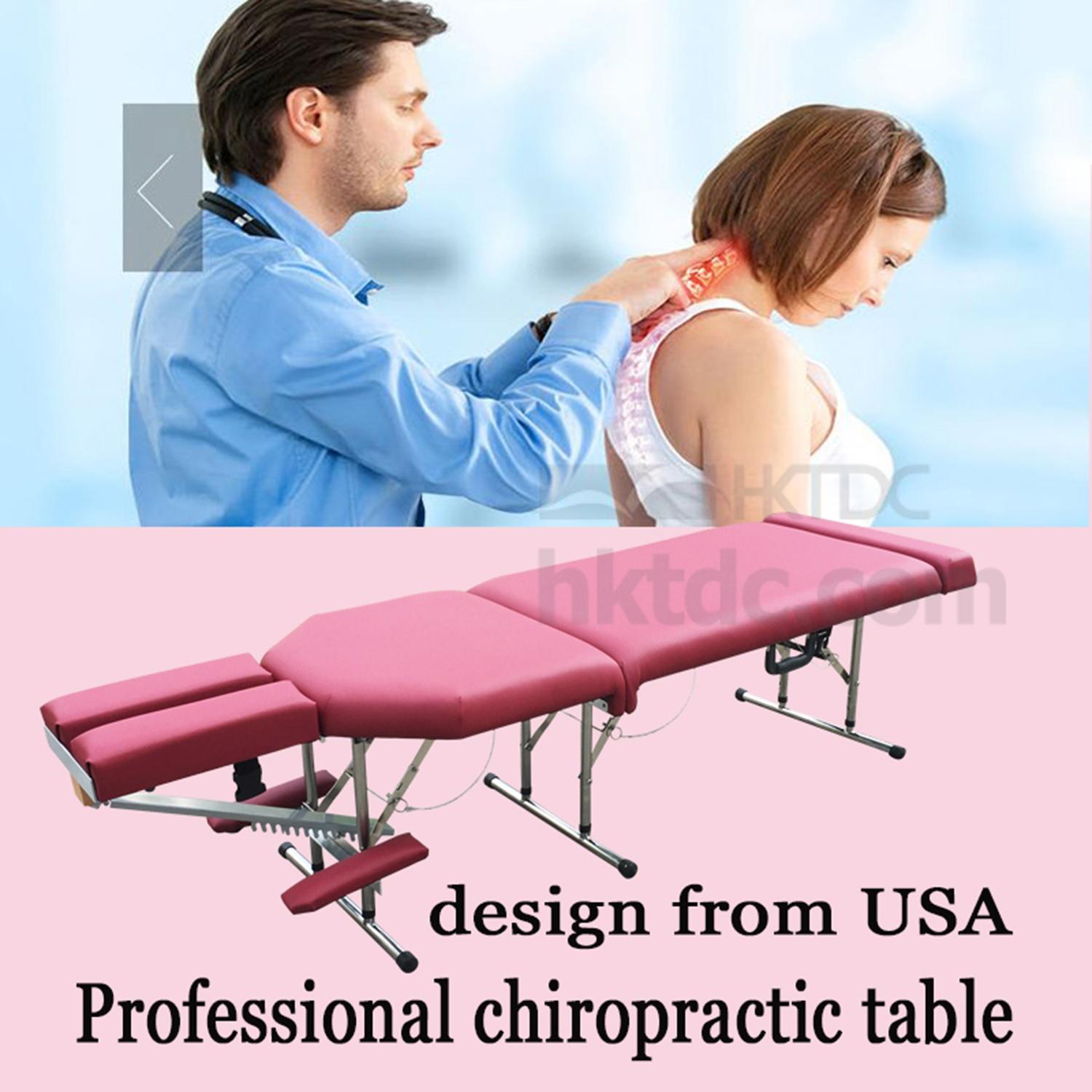 The chiropractic table is made of stainless steel, high density foam, PU leather
