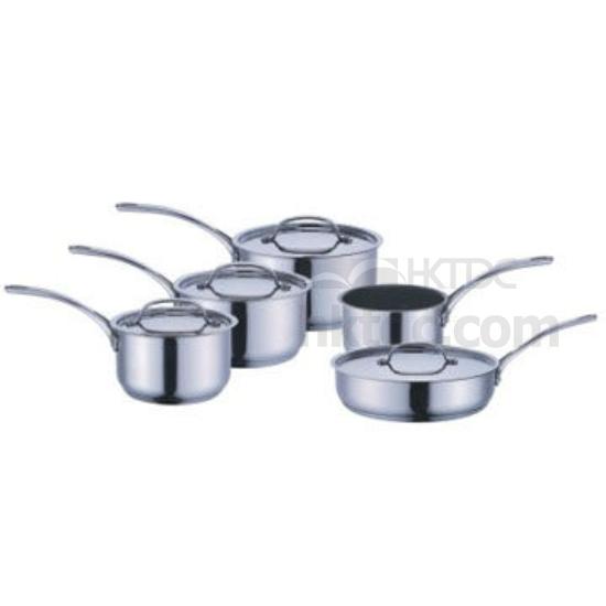 Non-stick milk pan and fry pan in stainless steel cookware set 9 pieces