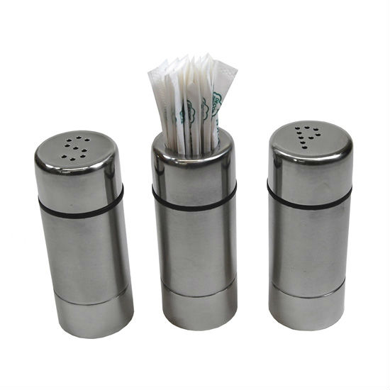 Set of 1 toothpick dispenser, 1 salt shaker and 1 pepper shaker.