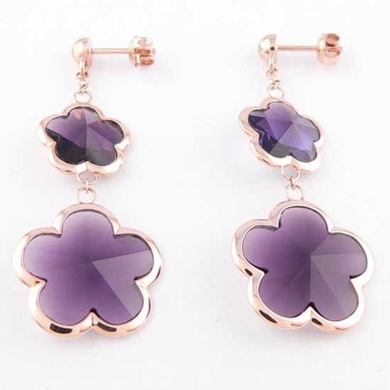 This pair of earrings presents themselves in a romantic and feminine way. The earrings are made of 316L stainless steel for a lasting beauty. The amethyst-colored and flower-shaped crystals add a chic touch to the earrings.