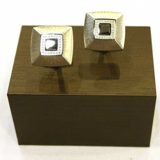 Presented is a pair of cufflinks boasting an exquisite design. The cufflinks are set in stainless steel with a sandy finish. The center is embellished with cubic zirconia stones to give out gorgeous shine.