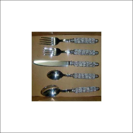 It is a stainless steel cutlery set containing 2 forks,2 spoons and 1 knife