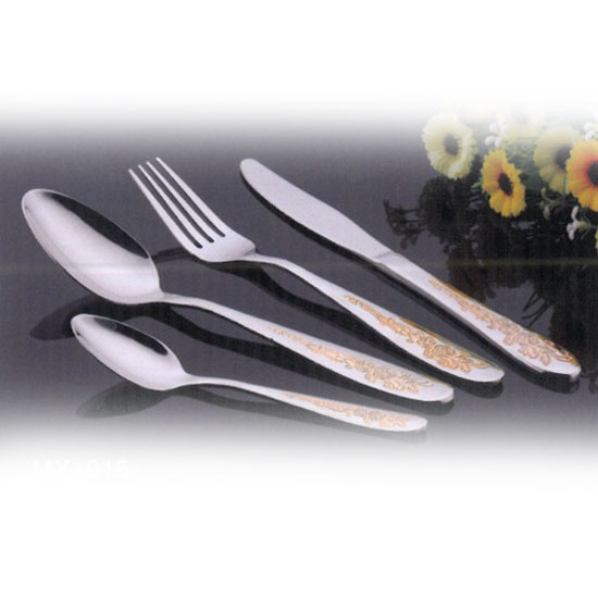This cutlery set is remarkable for the subtle floral pattern on the handles. It comes with two spoons, a knife and a fork for serving ordinary meals. Boasting good durability, this set is ideal for everyday use.