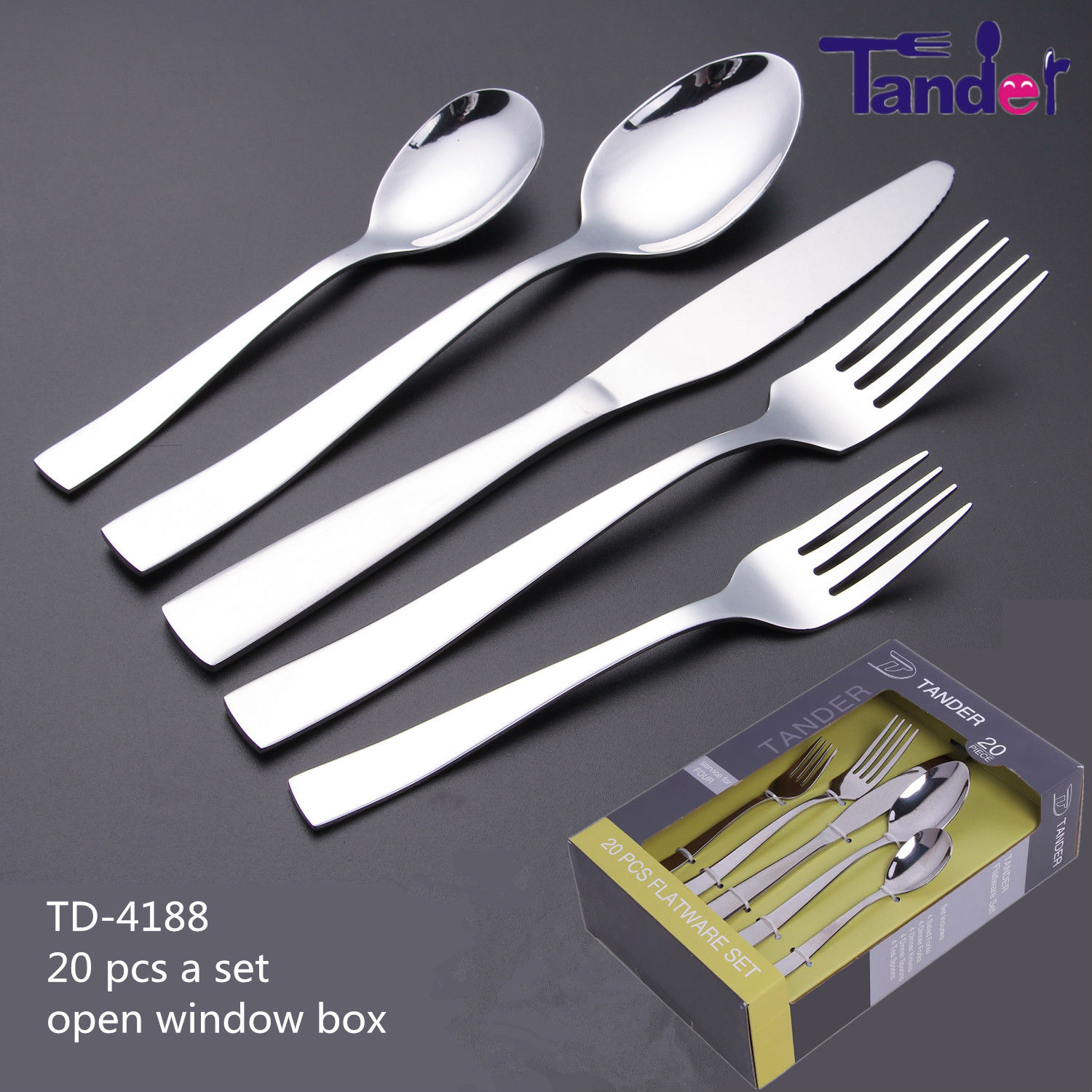 It is a set tableware contains 20 pieces, it is made of stainless steel with mirror polish.