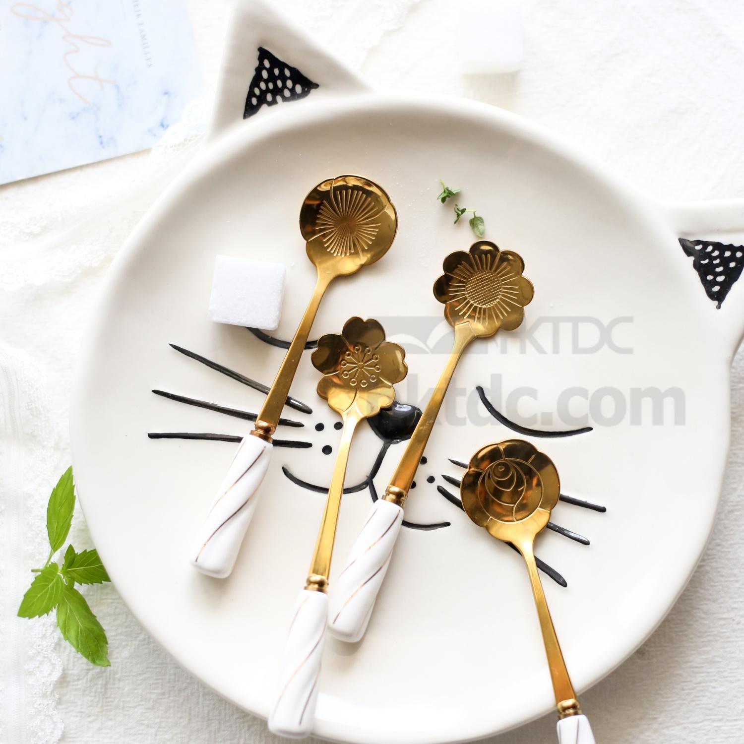 Hot selling stainless steel dessert spoon cutlery Flower spoon