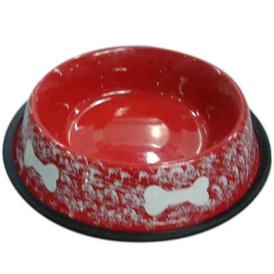 Shown here is a stainless steel dog bowl that has an attractive color-coated design. The durable dog bowl is fitted with anti-slip rubber. This stylish and sturdy dog bowl is second to none.