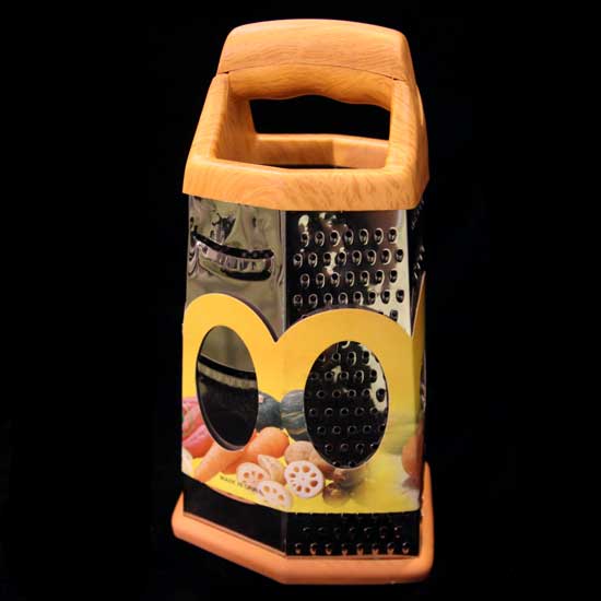 The stainless steel grater features superior grinding power. It comes with a wooden handle for safe and good portability. This grater makes an excellent kitchenware item for modern homes.