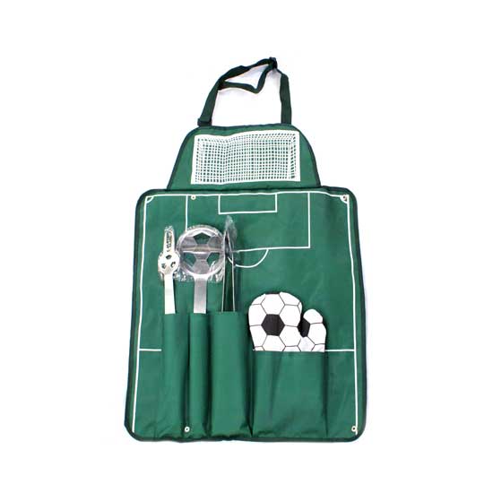This is a 4-piece grill set constructed from stainless steel for sturdiness. The set is nicely packaged in a foldable apron for easy carrying. This versatile grill set is ideal for barbeques.