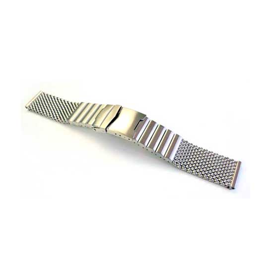 This silvery hued mesh watch band is made of stainless steel for a long service time. The block design accentuates the look for a contrasting style. This charming stainless steel watch band is ideal for completing your wristwatch designs.