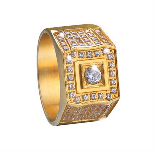 This well-designed ring comes with a graceful and stylish appearance. The golden ring is fitted with shiny cubic zirconia stones. It is a great addition to your jewelry collection.