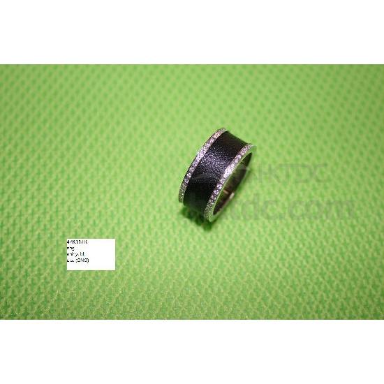 Stainless steel ring + genuine leather (black) + synthetic clear stone (set by CNC)