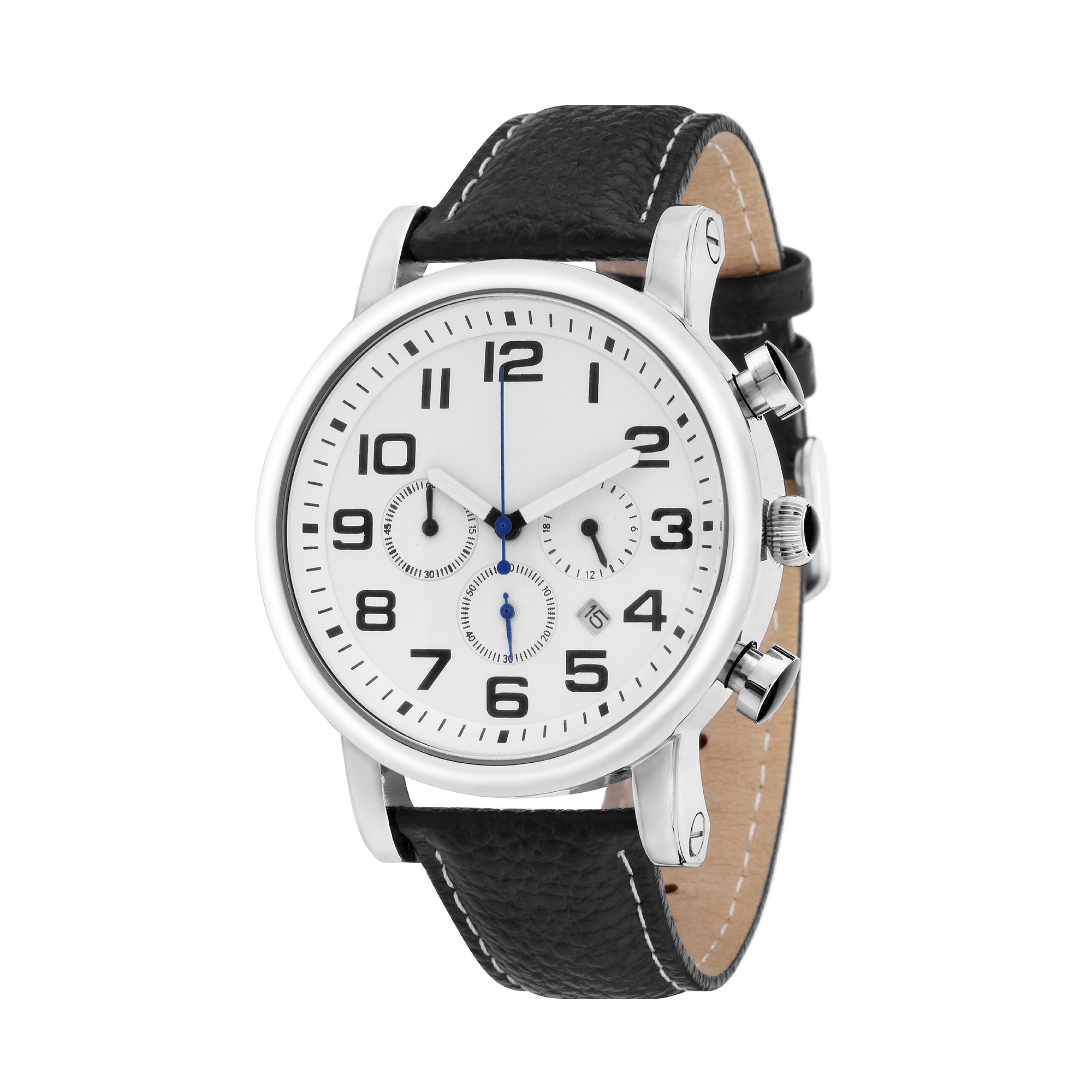 Stainless steel case, IP Black plated, structural dial up index, 5ATM, leather strap, chronograph date movement,
