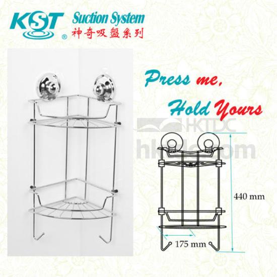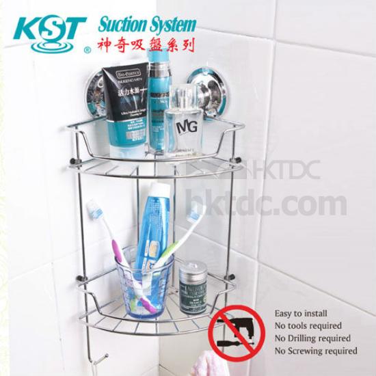 The suction 2 tier corner basket adopts KST suction system which obtained invention patent, completely different design provides you with unique market.