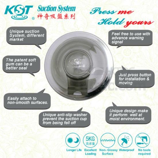 KST super suction cup cleanly and easily attach to nonporous surfaces, including smooth & non-smooth such as: glass, frosted glass tiles, uneven tiles, painting wood, grained wood, mirror & many more.