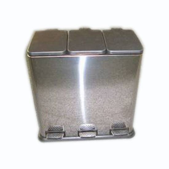 Featured here is a three-compartment pedal bin in a succinct and plain design. Each compartment comes with its own cover. The bin has a smooth pedaling mechanism. This sturdy bin makes an effective household item.