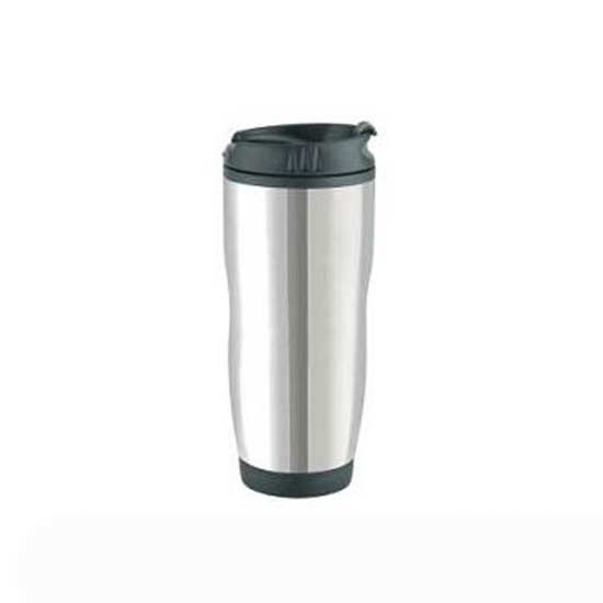The slim and tall stainless steel travel mug features double plastic walls to preserve the heat of the drink. It comes with a plastic seal lid for you to sip the drink without loosening the screw lid. Take your favorite drink on the go with this thermal travel mug.