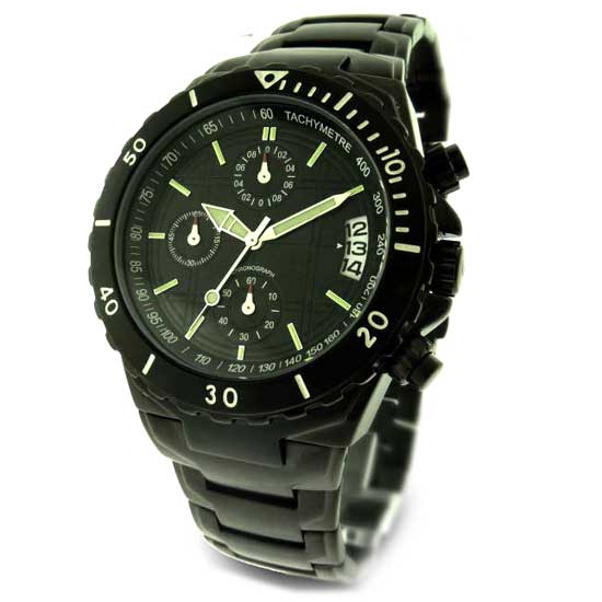 The men’s watch here looks cool in an all-black style. The case and band are plated in black with a glossy touch for enhanced durability. The hands and markers on dial come with luminous materials for convenience.