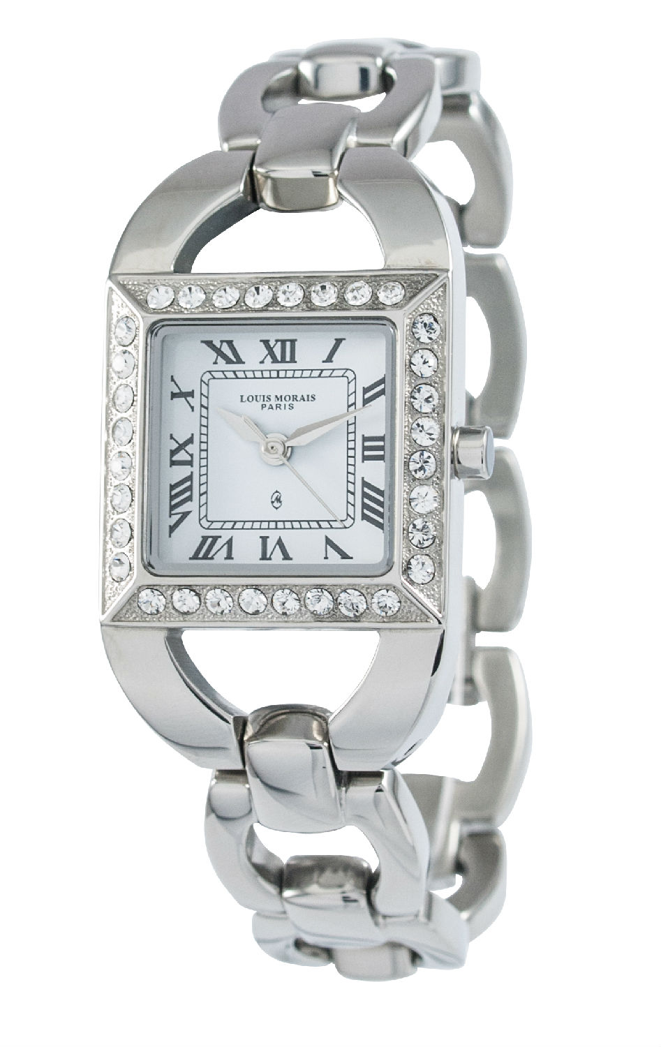 This classic timepiece features a stainless steel case and stainless steel bracelet. The stainless steel case is embellished with sparkling Swarovski crystals to draw welcome attention. The high-polish finish completes the great look of this bracelet watch.