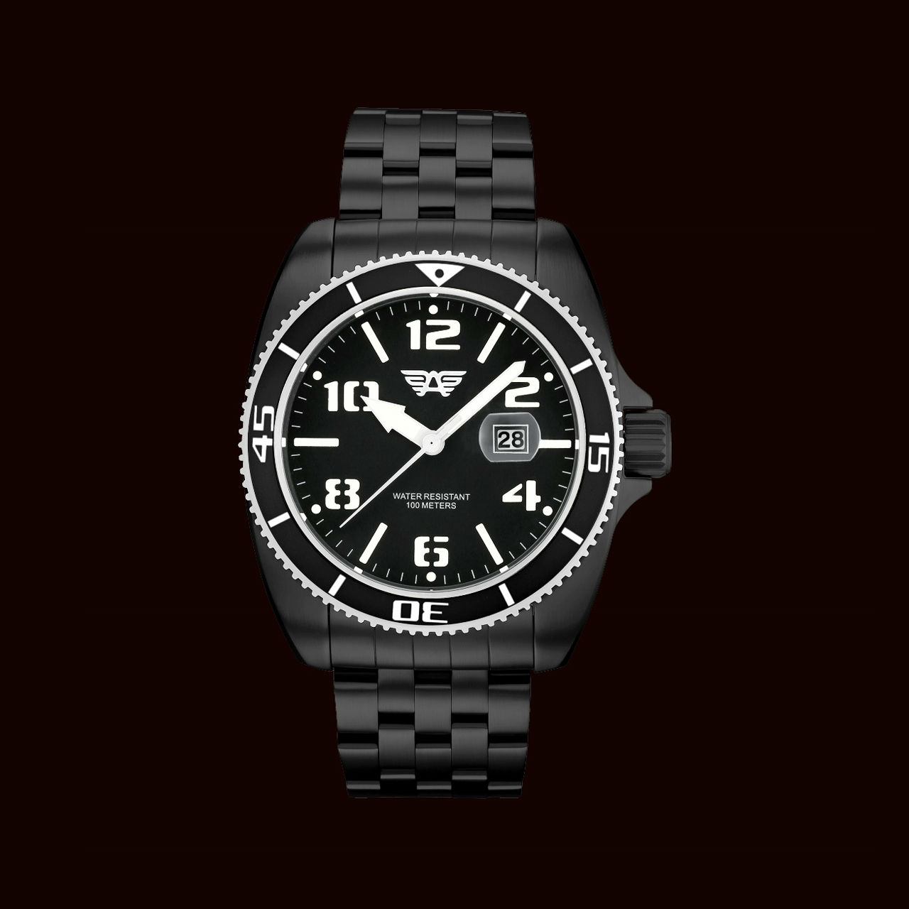 Highlighted by contrasting details set on the overall black background, this charming watch is sure a standout piece whether matching with any outfit. With the state-making stainless steel casing, this watch is resistant to water in depth of 100 meters. The precise Japanese mechanism guarantees punctuality with clear time markers and three rotating hands that are luminous for low-light readability.
