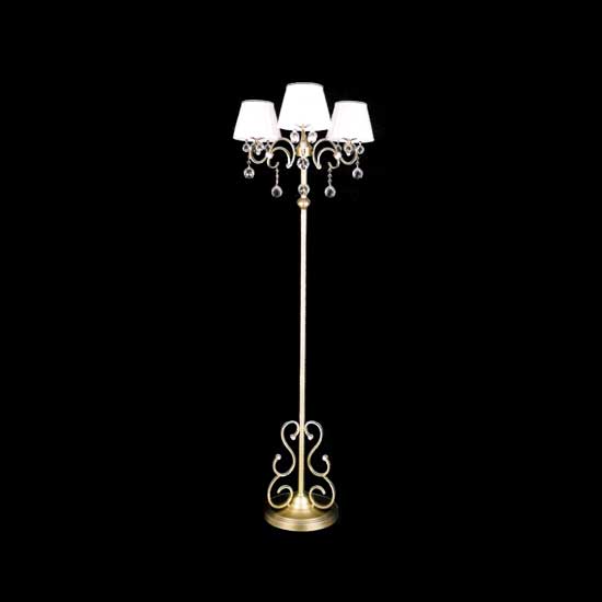 This is a floor lamp boasting a modern and elegant design. It features a durable structure with white cone-shaped lampshades and clear dangling embellishments. This well-designed lamp matches well with any stylish interior decoration.