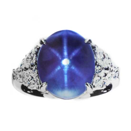 This is a dainty finger ring featuring a sophisticated 18K white gold mounting with exquisite details. It comes with a star sapphire centerpiece which defuses natural sparkling luster. The ring is complemented with sparkling diamond stones for a deluxe and elegant look.