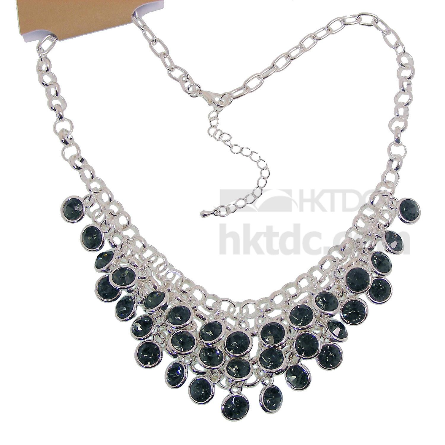 This is statement necklace highlighted by three layers of beaded drops in glass beads.