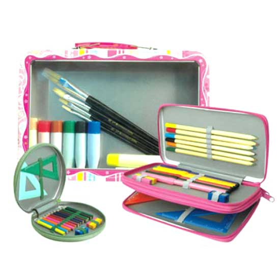 Featured is a series of tin stationery sets designed in fancy colors. The combination of tinplate case and a zippered closure prioritizes users' convenience and durability. Coloring sets of different designs are available for you to choose from.