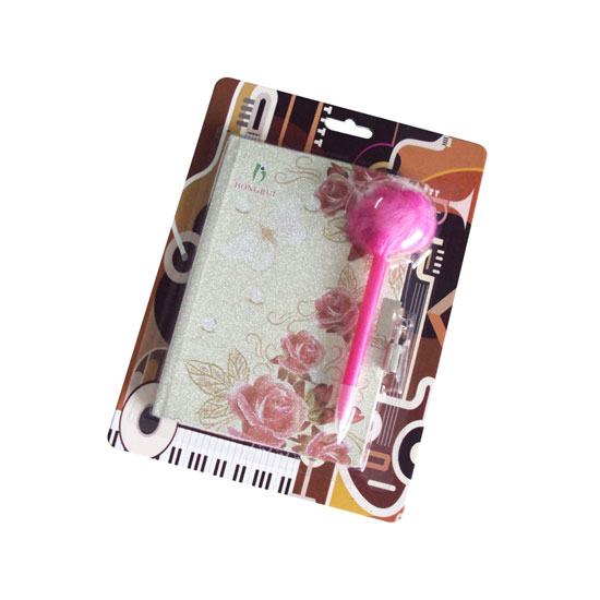 This is a stationery set that includes a notebook and a ball pen. The colorful prints on the cover of the notebook appeal to you instantly. The ball pen will bring you a smooth writing experience.