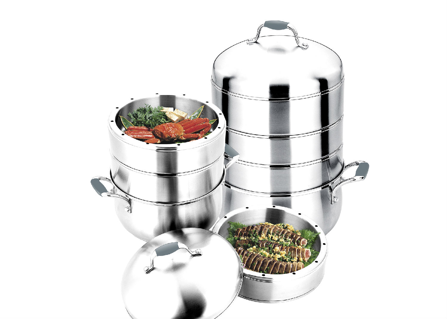 - Three steamers on top.