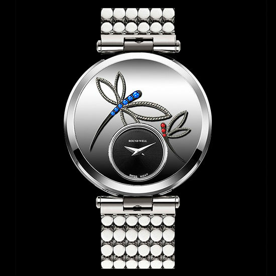 A minimalist subdial is embellished with dragonflies made of channel-set genuine diamond on this stylish ladies bracelet watch. Noted for its choice of top-quality stainless steel and fine craftsmanship, its chic watch band in delicately woven beads delightfully contrasts the smooth polished dial and bezel surface. The resulting elegance makes this luxury watch an exquisite gift for ladies.