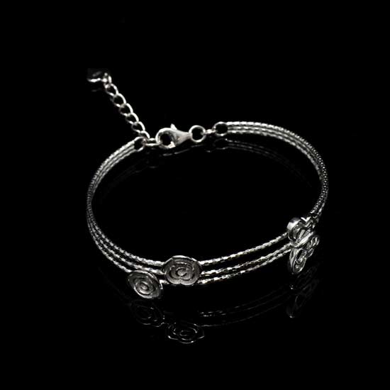 925 Silver bracelet features a unique three-tier design with floral decorations. It is exquisitely made with skilled workmanship. This bracelet is an ideal accessory to complement your outfit.