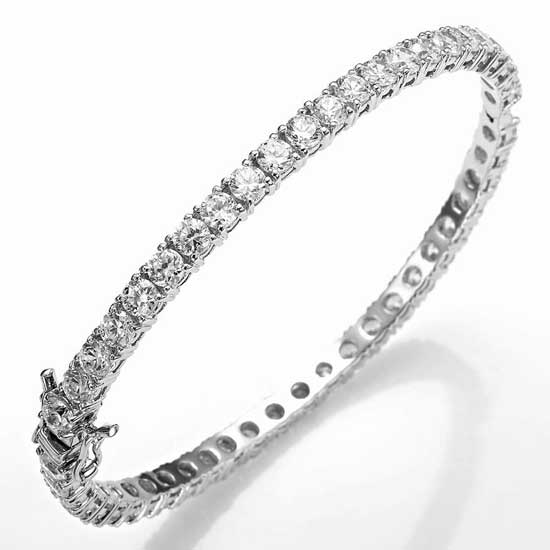 This sterling silver bangle is claw-set with sparkling faceted cubic zirconia. The slim band flaunts extreme elegance. Complement your jewel collection with this stunning bangle.