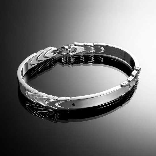 Displayed is a sterling silver bracelet that comes in a stylish design. The parallel curved detail makes this bracelet flexible and comfortable to wear. This sterling silver bracelet is a subtle decorative jewelry item that nevertheless shows of high taste.