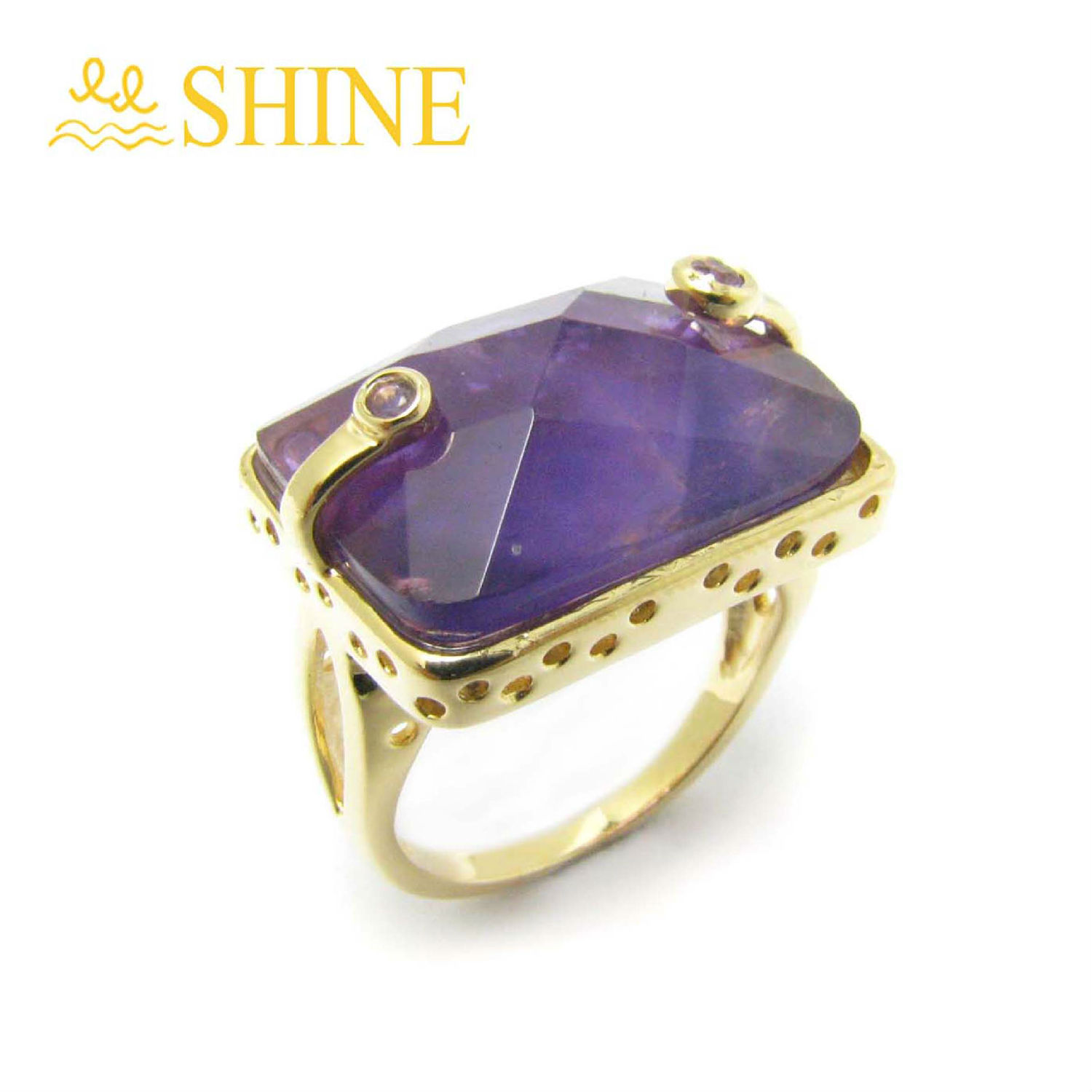 Sterling Silver In 14k Yg Plated Ring With Amethyst