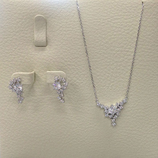 This sterling silver jewelry set is stylish and unique. The pieces are fitted with shiny cubic zirconia stones. The well-designed set is a great addition to your jewelry collection.