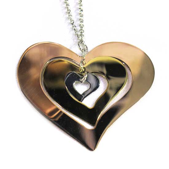 This trendy necklace is a great gift choice for ladies on any special occasion. The triple-heart pendant features three open hearts in sterling silver. The gold plating add shine and durability to the piece.