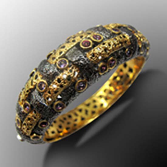 The sterling silver ring showcases an intricate design with a textured finish. The semi-precious stones accent the ring with added glamor. This fascinating ring is sure to be cherished for years to come.