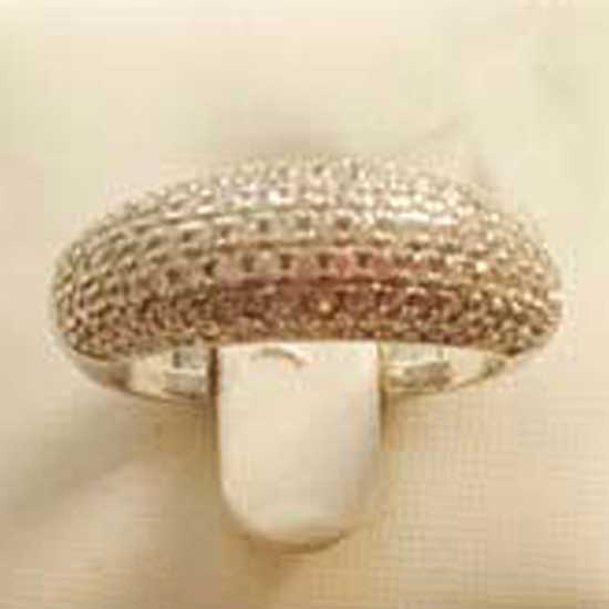 Displayed is a sterling silver ring that comes in a classic style. Paced with sparkling CZ stones, the ring glitters like a gem. This beautiful sterling silver ring is great for everyday wear or for cocktail parties.