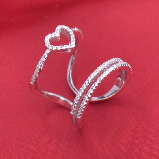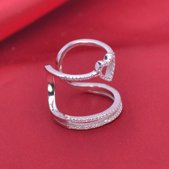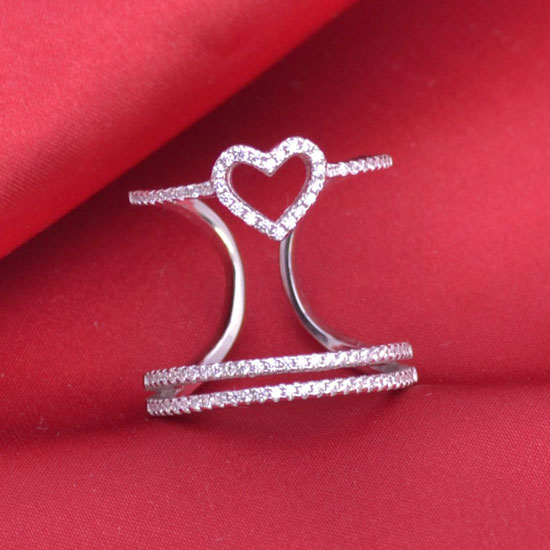 This 925 silver open-band ring features a hollow heart and a unique tiered design. It is embellished with dazzling stones for a refined look. It is a perfect, hearty gift for your beloved lady.