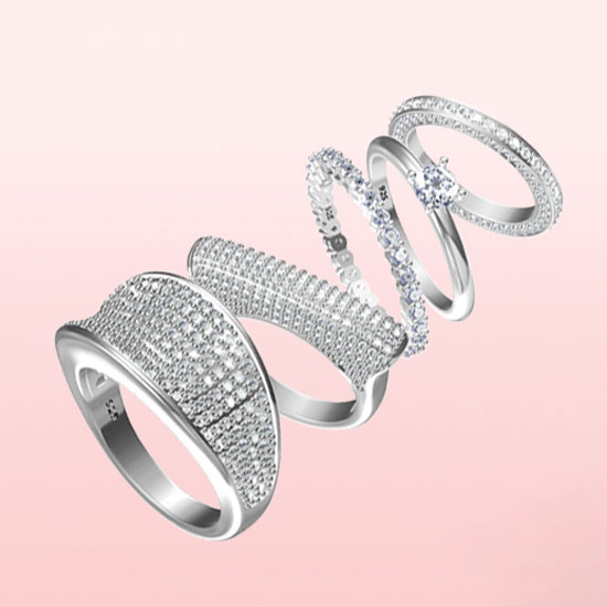 This is a finger ring that is made of sterling silver. The allover dazzling CZ stones are well paved on the micro settings. This finger ring shimmers with a high-gloss finish.