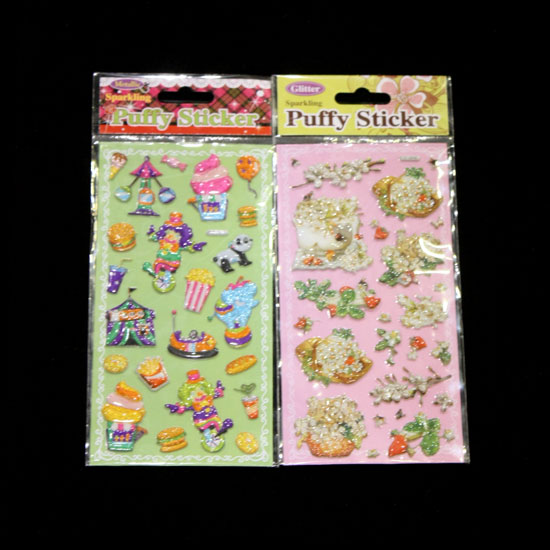 This series of stickers showcases a puffy design for a fun look. The glittering stickers are printed in vibrant colors. Customize your journal or scrapbook with this sticker series.
