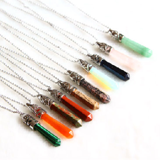 This is a collection of stone necklaces that comes in assorted colors. Finely crafted, the stone pendants are smooth and shiny. These unique stone necklaces are great for jazzing up your daily look.