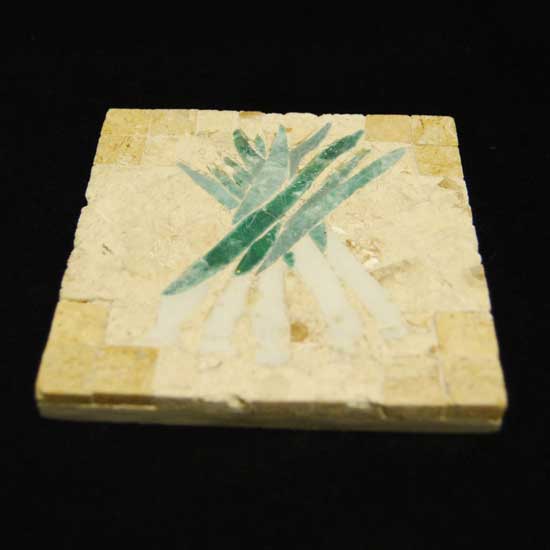 Featured is a square stone tile crafted with assorted small tiles to depict a plant with an antique touch. It is unique and sophisticated thanks to the brilliant craftsmanship. Spruce up your bathroom wall with ancient flair with this square stone tile.