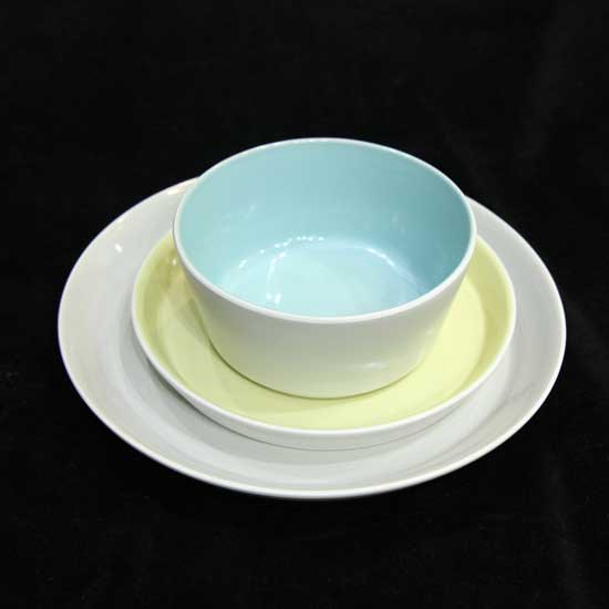 Presented here is a set of tableware that is made of stone material. A cereal bowl, a round side plate and a round dinner plate are included in this set of products. Featuring a simple yet chic design, they complement your dining table in a dainty way.
