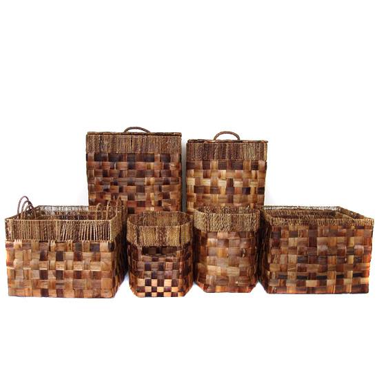 The featuring products are woven storage baskets in various sizes and shapes. Made from Philippine indigenous materials, the baskets are durable and can be used for storing different household items, including clothes, toys and umbrellas.