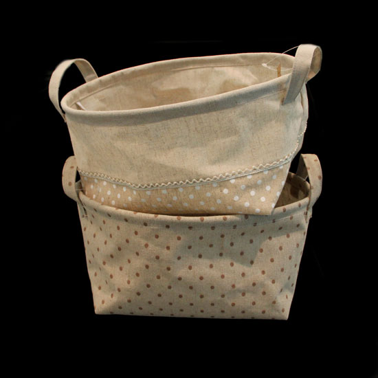 The storage baskets please your eyes with their comfortable natural colors. They are ornamented with polka dots for added appeal. In particular, the upper basket is also styled with elegant stitches.