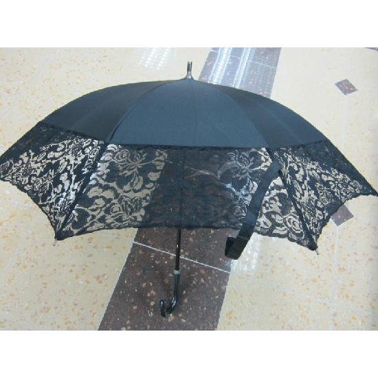 This classy umbrella is adorned with delicate lace embroidery. Quality construction comprises aluminum shaft and fiber glass ribs to against bad weathers. Its refined lace canopy is available for acting an elegant sun shade under strong sun rays.