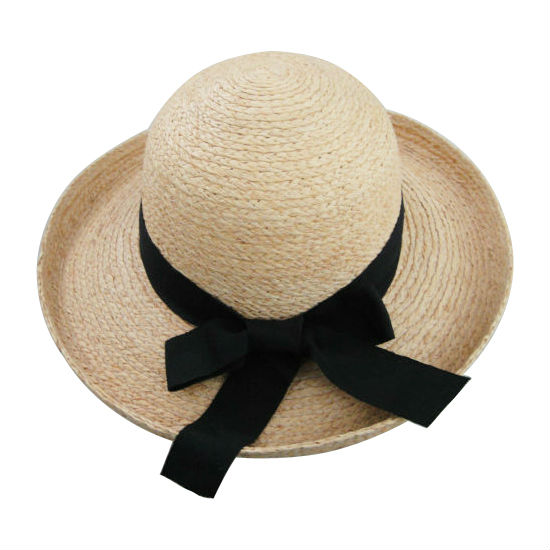 Made of raffia straw materials, this hat is tied with a black-color ribbon and a bow for added appeal. The breathable construction of this straw hat enables you to wear it comfortably all day long. This straw hat is a pretty and fashionable accessory to protect you from sunlight and UV rays.